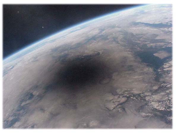 bemanning van het ruimtestation Mir naar de aarde en zag de maanschaduw